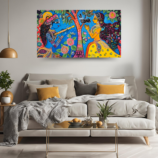 Madhubani Painting Art | Radha Krishna - Divine love and spirituality| Indian Folk Art