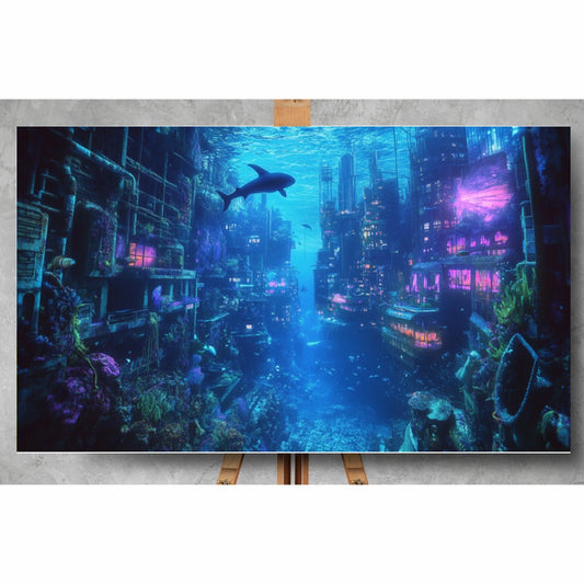 Underwater City: Submerged cityscape, marine life, and abstract colors - Landscapes