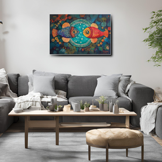 Madhubani Fish Marriage Painting : Signifying love and unity - Indian Folk Artwork