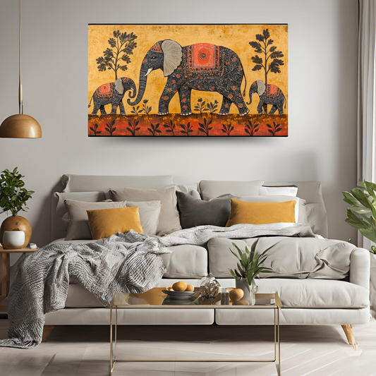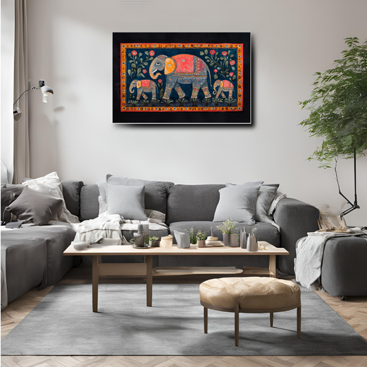 Madhubani Painting Art | Elephant Family- Strength and unity - Vibrant| Indian Folk Art