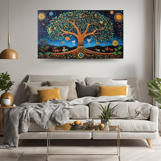 Madhubani Painting Art | Tree of Life - Symbolizing Harmony and Nature - Vibrant | Indian Folk Art