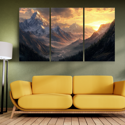 Himalayan Dawn: Snow-capped Mountains, Golden light, and Misty atmosphere - Landscapes